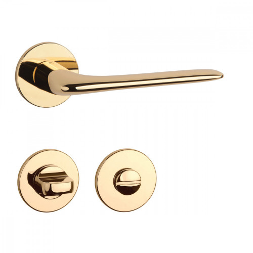 Rozetová kľučka na interiérové dvere s okrúhlou rozetou je vyrobená z materiálov vysokej kvality - zamak a je povrchovo upravená. Rozeta má priemer 52 mm a hrúbku len 5 mm. Minimalistický dizajn rozety s vysokou stabilitou kľučky na dverách pôsobí jemne, a tým ponecháva priestor pre vyniknutie dizajnu samotnej kľučky.