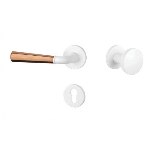 Mechanizmus kľučky obsahuje vratnú pružinu. Výstupky na rozete zabraňujú jej pretáčaniu a skrutky na preskrutkovanie cez celú šírku dverí zaručia pevnejšie a stabilnejšie uchytenie kovania.