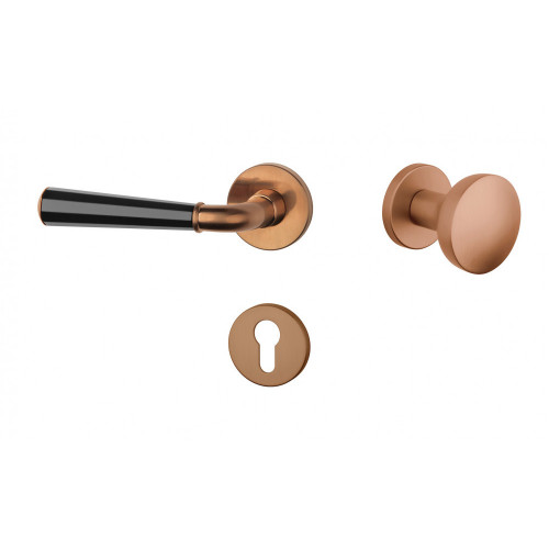 Mechanizmus kľučky obsahuje vratnú pružinu. Výstupky na rozete zabraňujú jej pretáčaniu a skrutky na preskrutkovanie cez celú šírku dverí zaručia pevnejšie a stabilnejšie uchytenie kovania.