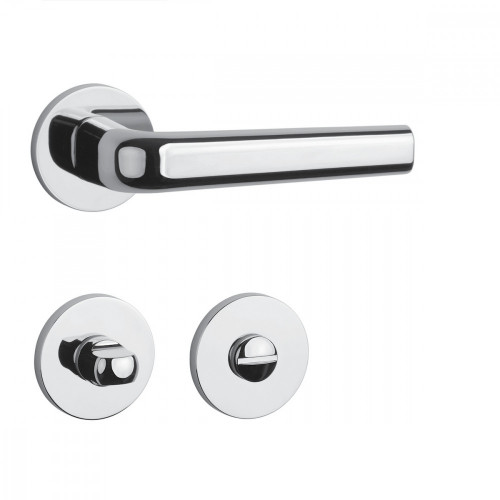 Rozetová kľučka na interiérové dvere s okrúhlou rozetou je vyrobená z materiálov vysokej kvality - zamak a je povrchovo upravená. Rozeta má priemer 52 mm a hrúbku len 7 mm.