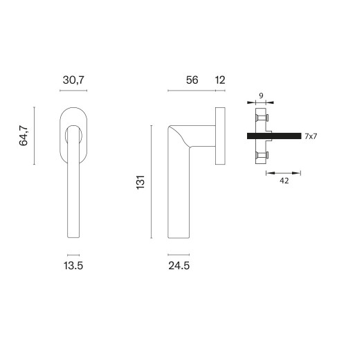 Kľučka na eurookno s oválnou rozetou je vyrobená z kvalitného materiálu zamak - zliatina zinku a je povrchovo upravená. Rozeta má rozmery 64,7 x 30,7 mm a hrúbku 12 mm.