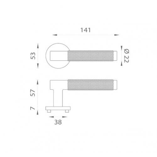 Rozetová kľučka na interiérové dvere s okrúhlou rozetou je vyrobená z materiálov vysokej kvality - zamak a je povrchovo upravená. Rozeta má priemer 53 mm a hrúbku len 7 mm. Minimalistický dizajn rozety s vysokou stabilitou kľučky na dverách pôsobí jemne, a tým ponecháva priestor pre vyniknutie dizajnu samotnej kľučky.