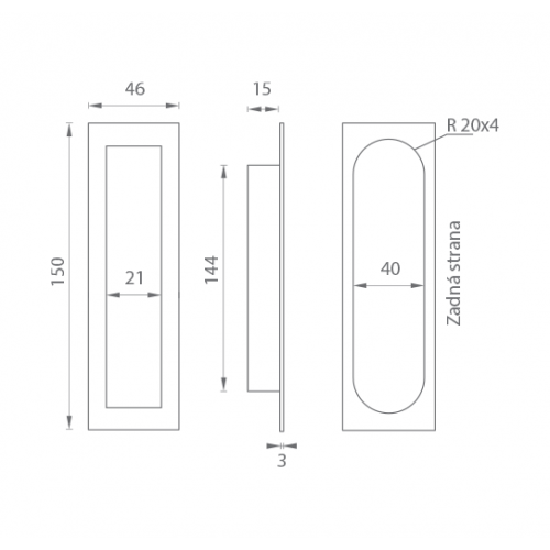 Drevená mušľa na posuvné dvere má výšku 150 mm, šírku 46 mm a zádlab 15 mm. Montáž mušle lepením. Cena je uvedená za kus.