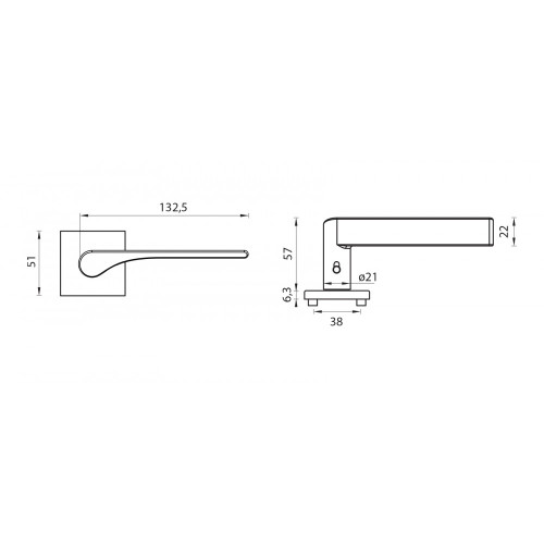 Rozetová kľučka na interiérové dvere s hranatou rozetou je vyrobená z materiálov vysokej kvality - zamak a je povrchovo upravená. Rozeta má rozmery 51 mm x 51 mm a hrúbku 6,3 mm.