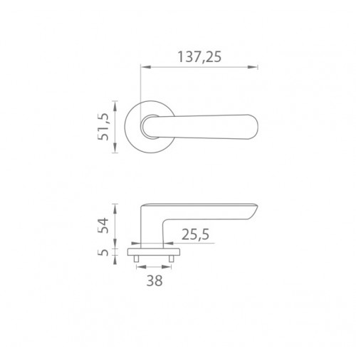Rozetová kľučka na interiérové dvere s okrúhlou rozetou je vyrobená z materiálov vysokej kvality - zamak a je povrchovo upravená. Rozeta má priemer 52 mm a hrúbku len 5 mm. Minimalistický dizajn rozety s vysokou stabilitou kľučky na dverách pôsobí jemne, a tým ponecháva priestor pre vyniknutie dizajnu samotnej kľučky.
