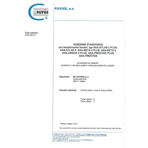 • certifikát bezpečnostnej triedy 3 (ČSN EN 1906:2012)