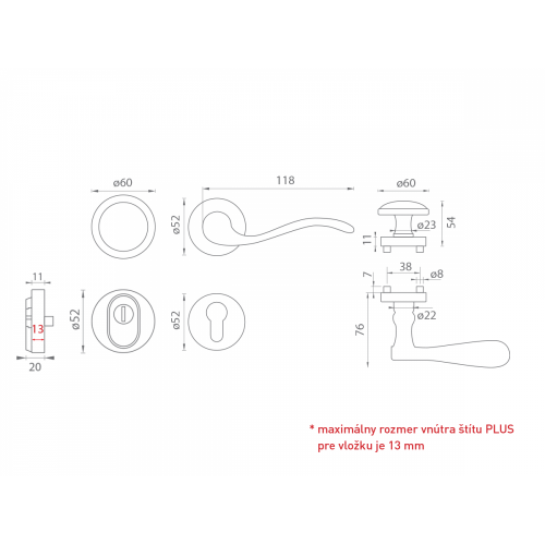 Maximálny rozmer vnútra rozety PLUS pre vložku je 13 mm.
