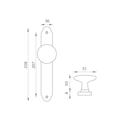 Dverová pevná priama guľa na rustikálnom štíte je vyrobená z materiálov vysokej kvality - zamak a je povrchovo upravená.