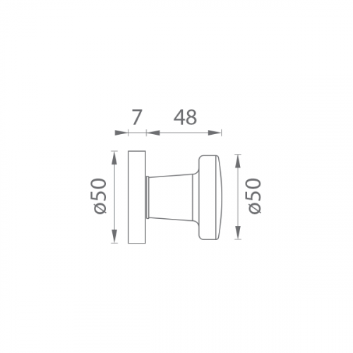 Dverová priama guľa na okrúhlej rozete je vyrobená z hliníka s povrchovou úpravou. Guľa aj rozeta má priemer 50 mm a hrúbku 7 mm.