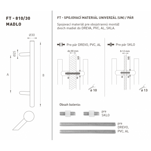 FT - MADLO kód K10 Ø 30 mm UN pár Nerez matná