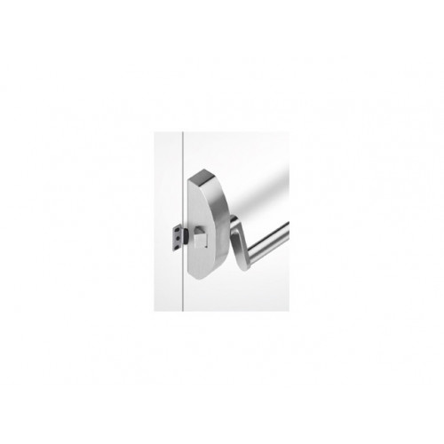 Panikové kovanie pre sklenené jednokrídlové dvere s jednobodovým zaistením. Zatváranie cez bočnú oceľovú západku. Bez prístupu z vonkajšej strany.