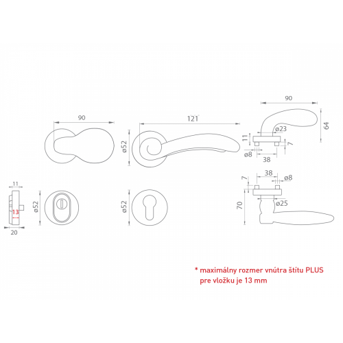 Maximálny rozmer vnútra rozety PLUS pre vložku je 13 mm.