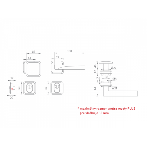 Maximálny rozmer vnútra rozety PLUS pre vložku je 13 mm.