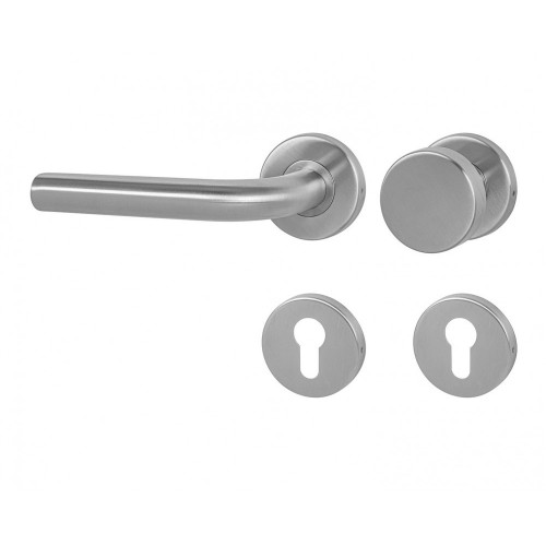 Rozetová kľučka na interiérové dvere s okrúhlou rozetou z vysokokvalitnej nehrdzavejúcej ocele, známej ako nerez a je povrchovo upravená. Rozeta má priemer 54 mm a hrúbku 9 mm. Je farebne stabilná a odolná voči opotrebeniu. Kovanie je testované podľa normy ČSN EN 1906:2012 na 200 000 cyklov.
