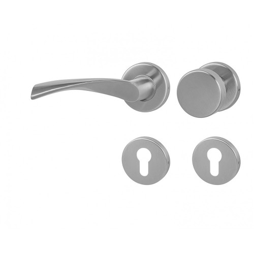 Rozetová kľučka na interiérové dvere s okrúhlou rozetou z vysokokvalitnej nehrdzavejúcej ocele, známej ako nerez a je povrchovo upravená. Rozeta má priemer 54 mm a hrúbku 9 mm. Je farebne stabilná a odolná voči opotrebeniu. Kovanie je testované podľa normy ČSN EN 1906:2012 na 200 000 cyklov.
