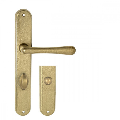 Štítová kľučka na interiérové dvere s oválnym štítom je vyrobená z materiálov vysokej kvality - mosadz a je povrchovo upravená. Oválny štít má rozmery 37 mm x 240 mm a kľučka obsahuje vratný mechanizmus.