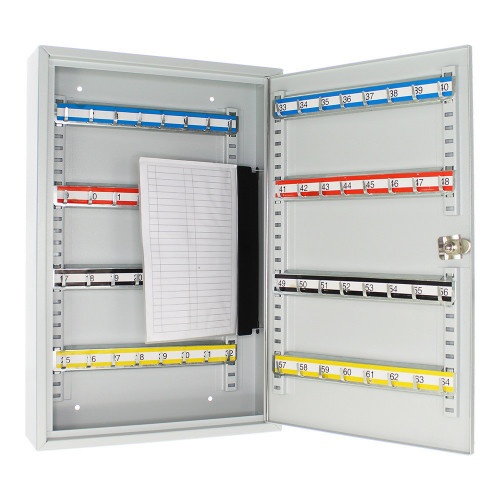 Skrinka na kľúče S100 umožňuje prehľadné usporiadanie kľúčov. Je vyrobená z kvalitného oceľového plechu a obsahuje priestor na 100 pozinkovaných háčikov na kľúče. Lišty, na ktorých sú háčiky upevnené je možné vertikálne posúvať. 100 farebných visačiek je možné použiť pre lepšiu evidenciu. Balenie obsahuje potrebný kotviaci materiál pre pripevnenie na stenu.