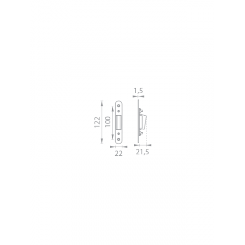 Protiplech k magnetickému zámku značky TUPAI. Protiplech má rozmery 22 mm x 122 mm a je nastaviteľný 1,5 mm do každej strany.