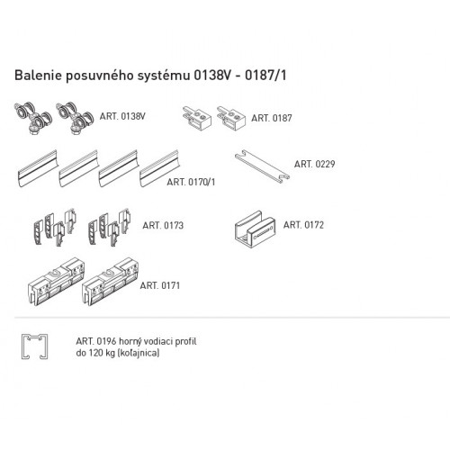SC – posuvný systém 100 SILENT GLASS 120 KG s krytom na profil obsahuje: