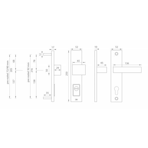 Pri bezpečnostnom kovaní je potrebné poznať vzdialenosť medzi osou kľučky a osou kľúča (rozteč). Štandardná vzdialenosť je 72, 90 alebo 92 mm.