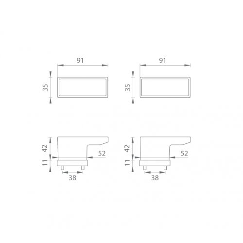 Rozetová kľučka na interiérové dvere s obdĺžnikovou rozetou je vyrobená z materiálov vysokej kvality - zamak a je povrchovo upravená. Rozeta má rozmery 52 mm x 35 mm a štandardnú hrúbku 11 mm. Samotná rozeta je súčasťou dizajnu kľučky.