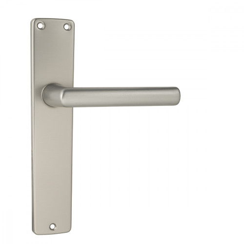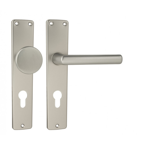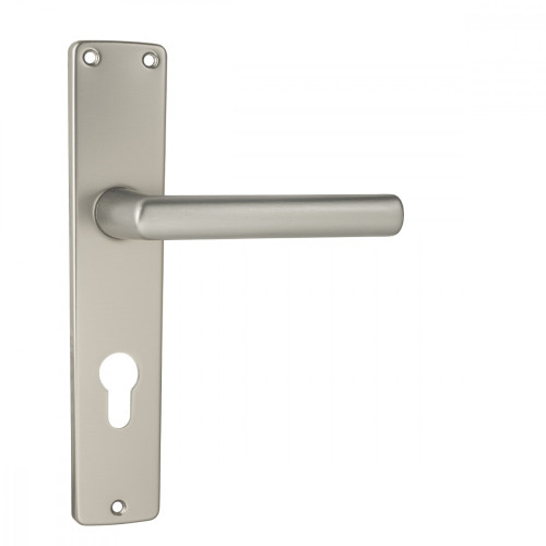 Štítová kľučka na interiérové dvere s dlhým oválnym štítom je vyrobená z hliníka a je povrchovo upravená. Dlhý hranatý štít má rozmery 44 mm (vrchná časť) x 216 mm x 40 mm (spodná časť) a hrúbku 7 mm.